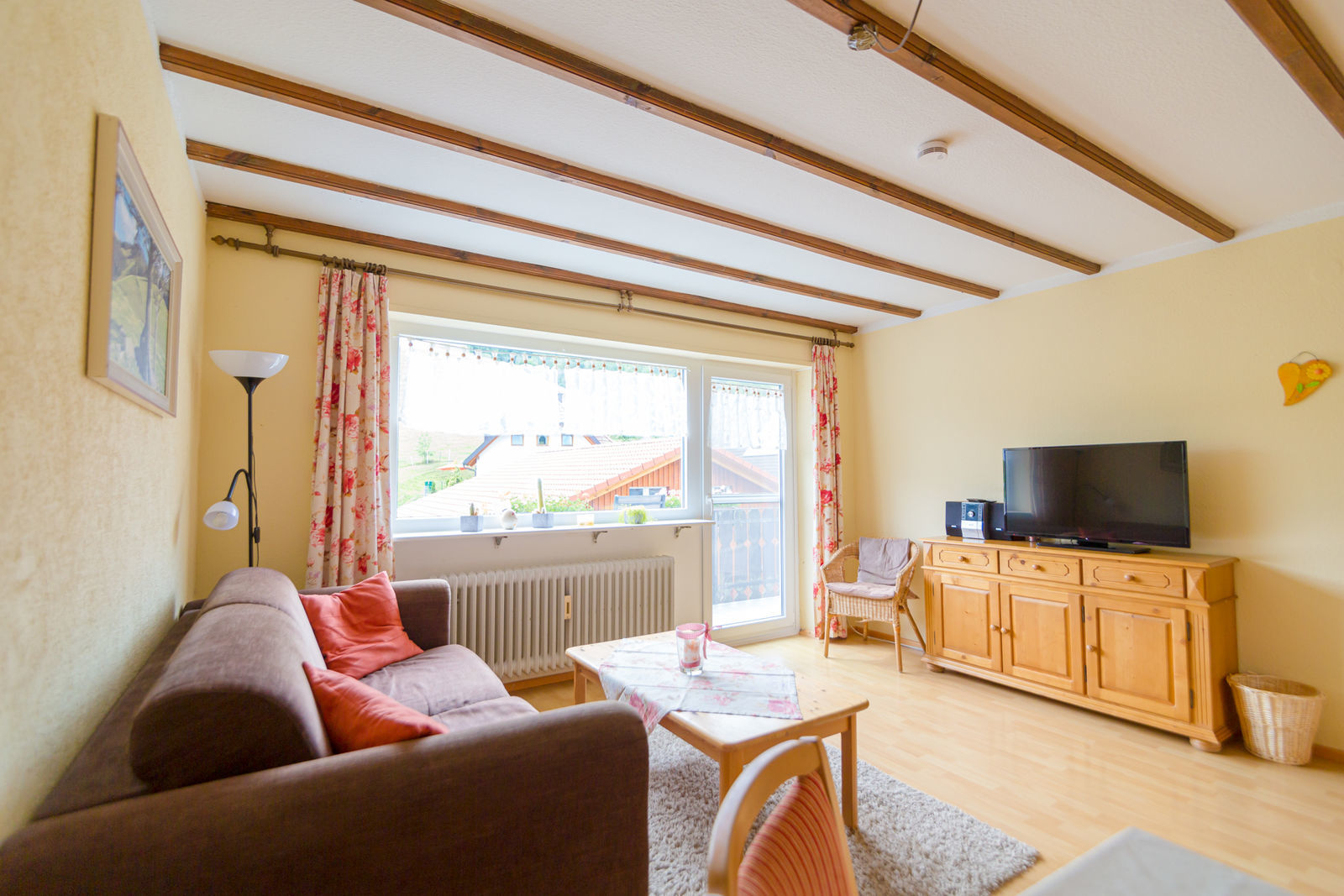 Unsere schöne Ferienwohnung für 2-3 Personen im Haus am Bach bietet Ihnen einen praktischen und gemütlichen Komfort auf ca. 45 ²m Wohnfläche. Ausgestattet ist die Wohnung mit einem Schlafzimmer mit Doppelbett, eine Schlafcouch im Wohnzimmer mit Balkon, Küche und einem Bad mit Dusche/WC.